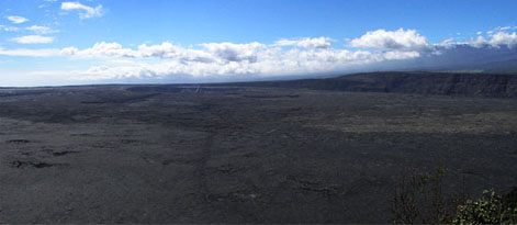 キラウエア・イキ火口を見下ろす展望台です。キラウエア火口と共に晴れているとマウナロア(標高4169m)までが見渡せる絶景ポイント。1959年の噴火の時には約580mもの溶岩を吹き上げました。この火口の底、約70m下には真っ赤なマグマがあるそうです。火口を1周するキラウエア・イキ・トレイルは火口の底も淵も歩ける変化が楽しい一番のお勧めコース!