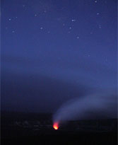 2008年の7月、日没に行った時には真っ赤に燃えるハレマウマウ火口を見ることができました。(→展望台からの写真を見る)